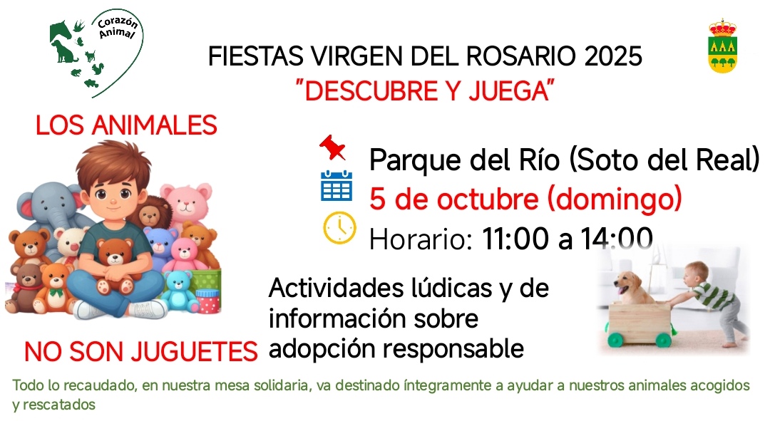 Soto del Real celebra sus Fiestas en honor a la Virgen del Rosario, patrona del municipio, el sábado 4, domingo 5 y martes 7 de octubre, con una amplia oferta de actividades y eventos tanto de día como de noche, diseñados para que todos los públicos puedan disfrutar estos días.